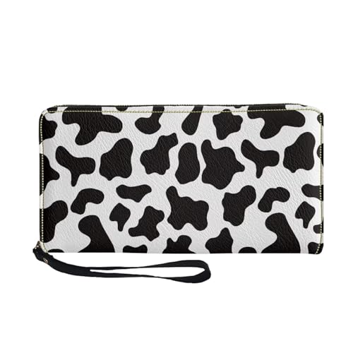 COEQINE Portefeuille fin en cuir PU pour homme avec fermeture éclair, porte-cartes et accessoires de voyage pour papa, anniversaire, jour commémoratif, Imprimé vache noir et blanc., Décontracté