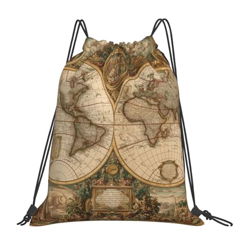 Art De Cartes du Monde Vintage Sac De Rangement Réglable Drawstring Bags Unisexe Sac De Natation pour Femmes Fête Hommes 36X42Cm