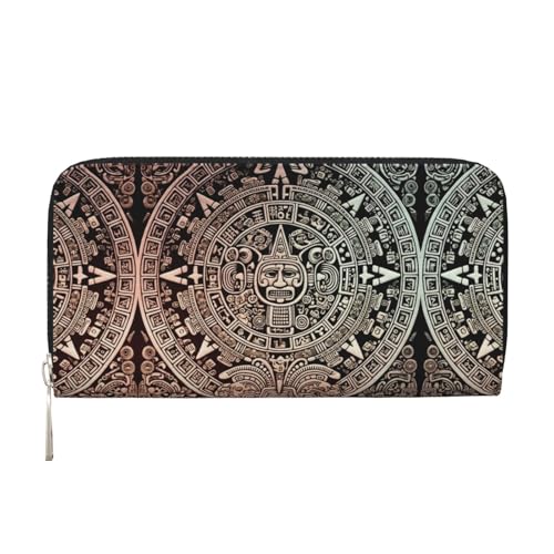 STVYUKL Portefeuille pour femme avec fermeture éclair en cuir synthétique pour téléphone, calendrier maya et porte-cartes de fin du monde, noir, taille unique, Noir , Taille unique