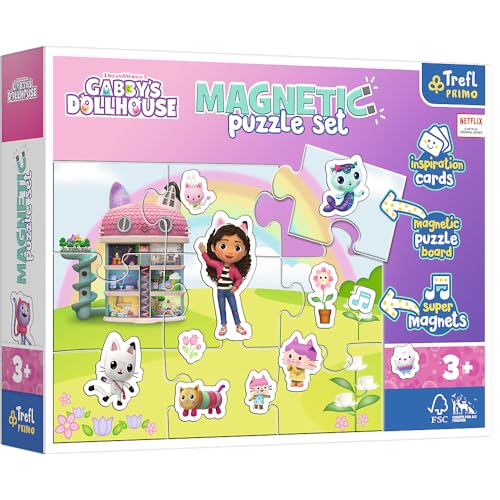 Trefl Primo - Magnetic Puzzle Set : Gabby's Dollhouse, Découvrez Le Monde de Gabi - Puzzle magnétique avec aimants colorés, Cartes inspirantes pour créer des scènes