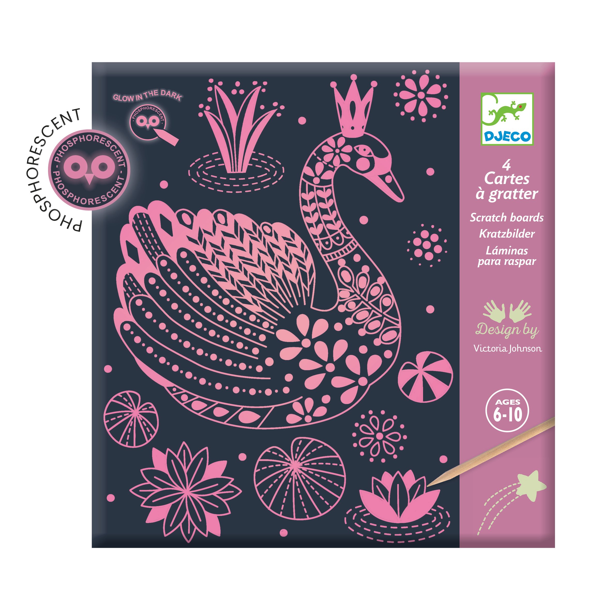 Pochette de cartes à gratter phosphorescentes Monde Merveilleux - Djeco - 4 pièces