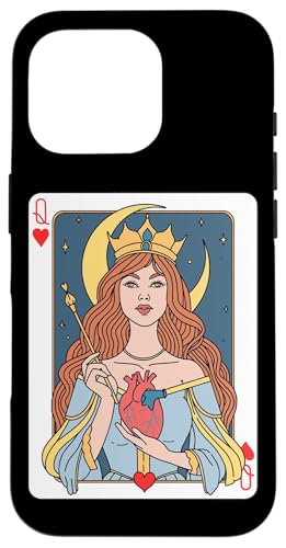 Queen of Hearts Pretty Girl Moon Jeu de Cartes Tarot Coque pour iPhone 16 Pro