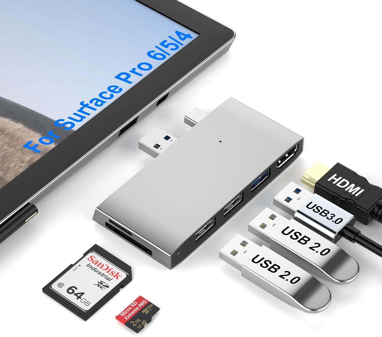 Station d'accueil Surface Pro 6/Pro 5/Pro 4 Adaptateur Hub USB 3.0 HDMI 4K, Lecteur de Cartes mémoire SD & TF/Micro SD, Adaptateur HDMI Surface Pro 4K@30Hz pour Microsoft Surface Pro 6/5/4