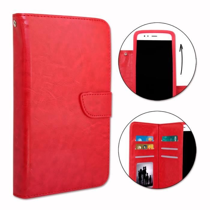Etui housse folio pour Microsoft Lumia 640 LTE format portefeuille en éco-cuir rouge avec double clapet intérieur porte cartes