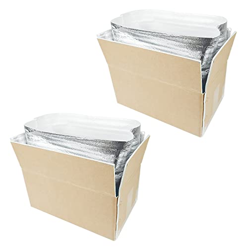 Thermo Chill Carton à double isolation avec doublure de sac isotherme en aluminium, boîte d'expédition réfrigérée pour aliments surgelés, envoi de colis, envoi postal 340x200x145 mm (2 pièces)