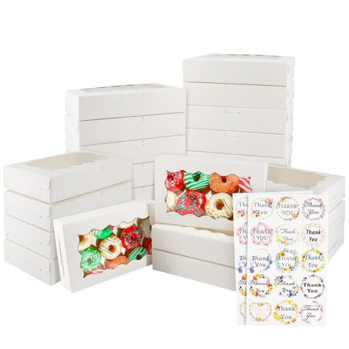 VIDETOL 24 Pièces Boîtes en Carton Blanc avec Fenêtre Transparente, 25 x 25 x 6.5 cm Boite Pâtisserie Carton, Boite Gateau pour Biscuits Cookies, Desserts, Gâteaux et Cadeaux