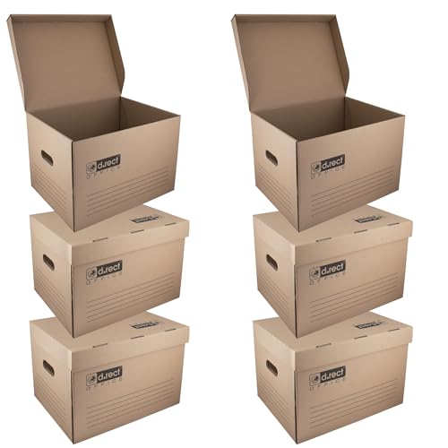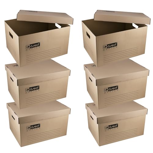 D.RECT KEEP.IT Lot de 6 Boîtes D’archive 2120 Empilables avec Couvercle Intégré – Carton Haute Densité 420 g/m² – Pour Classeurs et Boîtes D’archives – Certifié FSC