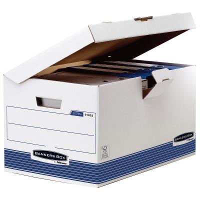 Bankers Box Caisse archives carton capacité - pour format folio H. 31 cm x l. 56,5 P. 39 Blanc / Bleu Montage automatique Lot de 10