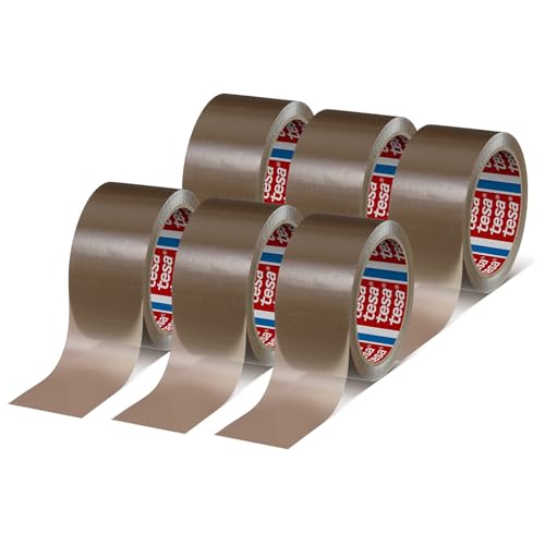 tesapack 4124 Lot de 6 Rubans Adhésifs d'Emballage PVC - Adhésif Premium de Qualité Supérieure pour Emballage de Colis et Cartons - Marron - 6 Rouleaux de 66 m x 50 mm Chacun