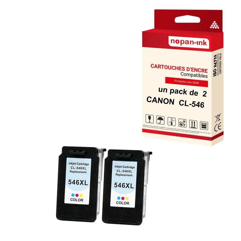NOPAN-INK - x2 Cartouche compatible pour CANON CL-546 XL CL-546XL Cyan + Magenta + Jaune 8288B001/8289B001