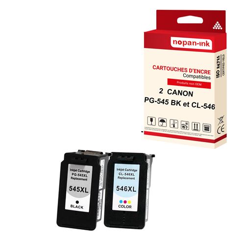 NOPAN-INK - x2 Cartouche compatible pour CANON PG-545 XL + CL-546 XL PG-545XL + CL-546XL Noir + Cyan + Magenta + Jaune ()