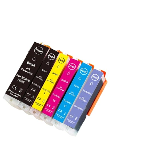 PZPSEQGM Cartouche à Encre Coraljet PGI-580XXL CLI-581XXL Multicolor Compatible avec TS6150 TS6151 TS6250 TS6251(6PCS 2BK C M Y PB)