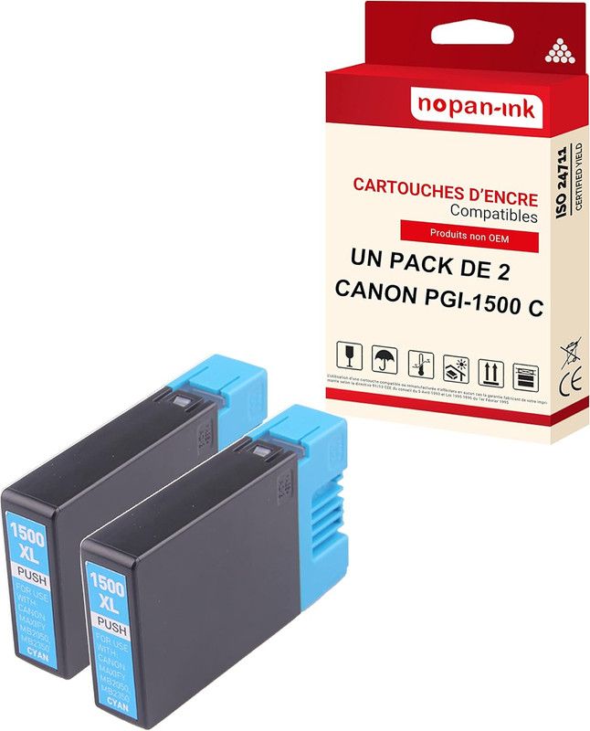 NOPAN-INK - x2 Cartouche compatible pour CANON PGI 1500 XL PGI 1500XL Cyan 9193B001