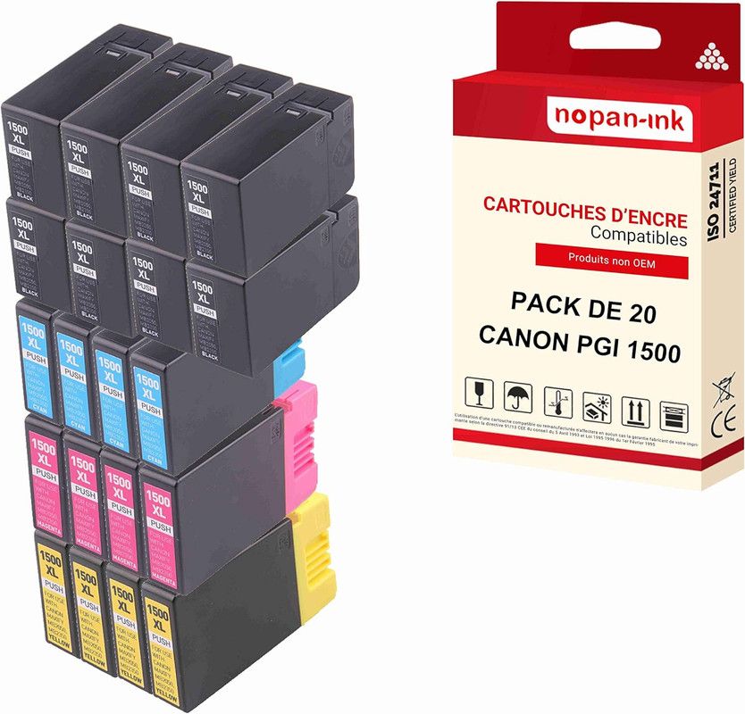 NOPAN-INK - x20 Cartouche compatible pour CANON PGI 1500 XL PGI 1500XL Noir (x8) + Cyan (x4) + Magenta (x4) + Jaune (x4) 919PK20