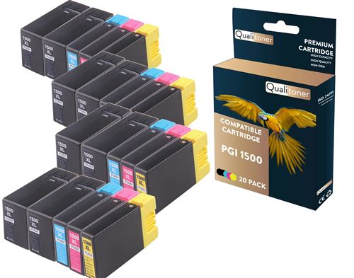 QUALITONER - 20 Cartouche compatible pour CANON PGI1500 XL PGI 1500XL Noir (x8) + Cyan (x4) + Magenta (x4) + Jaune (x4) pour Canon Maxify MB 2000 Seri