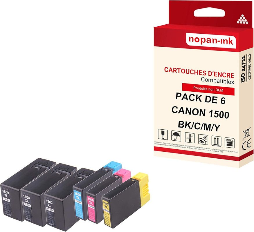 NOPAN-INK - x6 Cartouche compatible pour CANON 1500 XL 1500XL Noir (x3) + Cyan + Magenta + Jaune 919PK6
