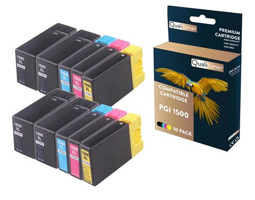 QUALITONER - 10 Cartouche compatible pour CANON PGI1500 XL PGI 1500XL Noir (x4) + Cyan (x2) + Magenta (x2) + Jaune (x2) pour Canon Maxify MB 2000 Seri