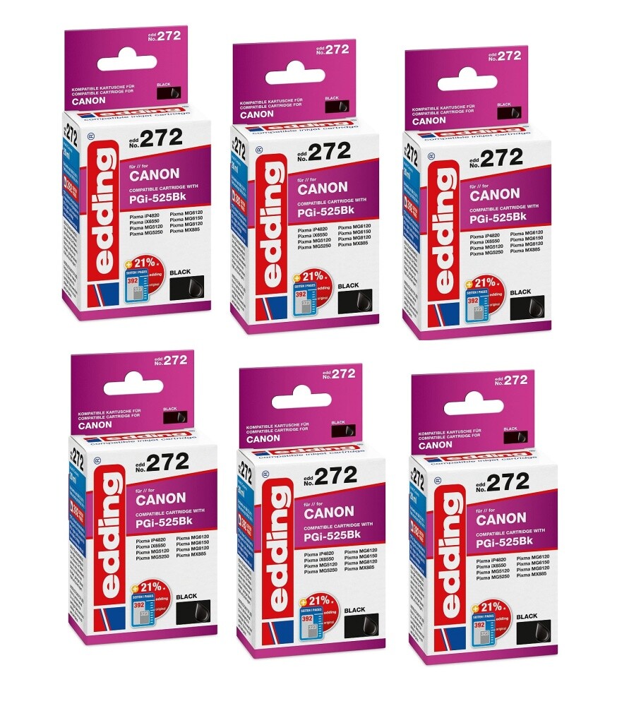 6x Original edding Encre Cartouche 272 pour Canon PGI-525BK Pixma IP 4850 4950