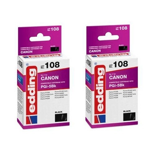 2x Original edding Encre Cartouche 108 pour Canon PGI-5 BK Pixma IP 3300 3500