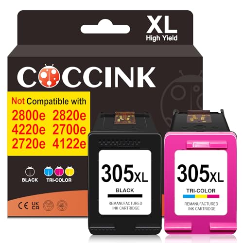 COCCINK 305XL Cartouche pour HP Envy 6032e 305 XL Envy 6000 6400e 6422 6458 6432e 6420 6475 6455e 6452e 6022e 6430e 6010 6010e 6012 6015 6020 6020e Cartouche Encre pour HP 305 XL Noir et Couleur