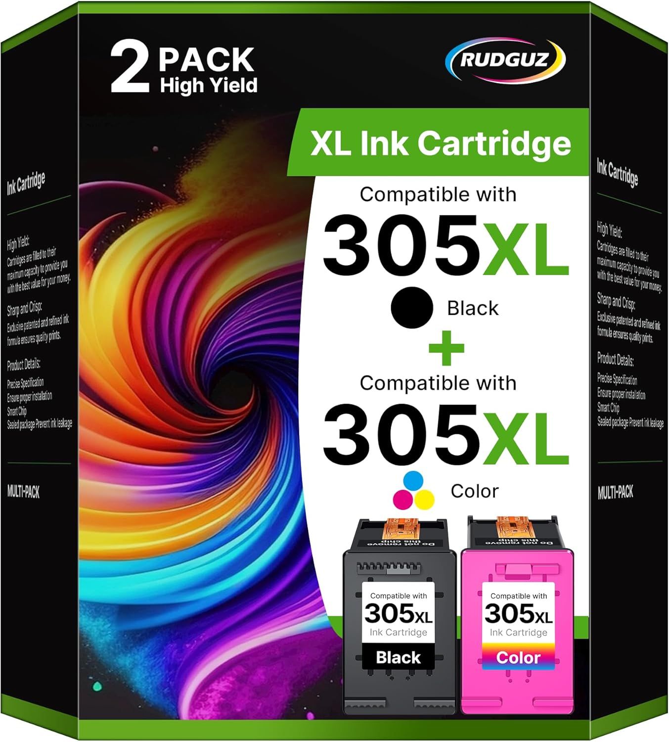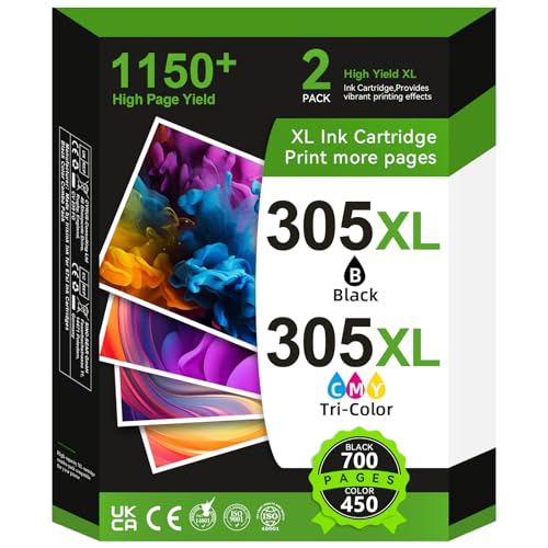 JEXNOVASHOP-305 XL Encre Compatible avec Cartouche HP 305 XL Noir et Couleur d'encre Multipack pour HP DeskJet 2710 2070e 2120 2721 2723 Envy 6010 6020 6022 6032 6020e Imprimante(2-Pack)