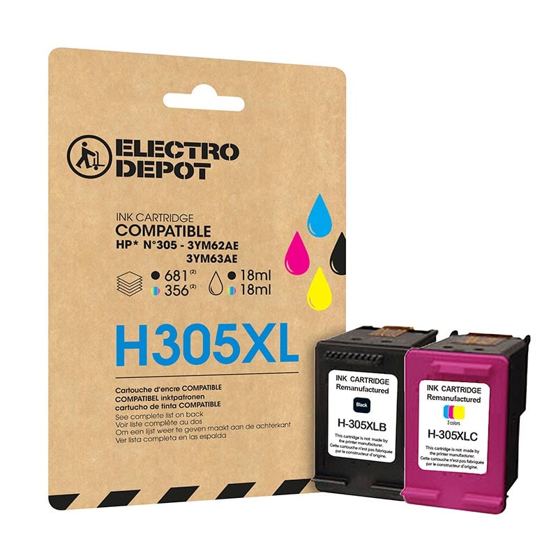 Cartouche D'encre Electro Depot Compatible Hp H 305 Xl Noir Et Couleur