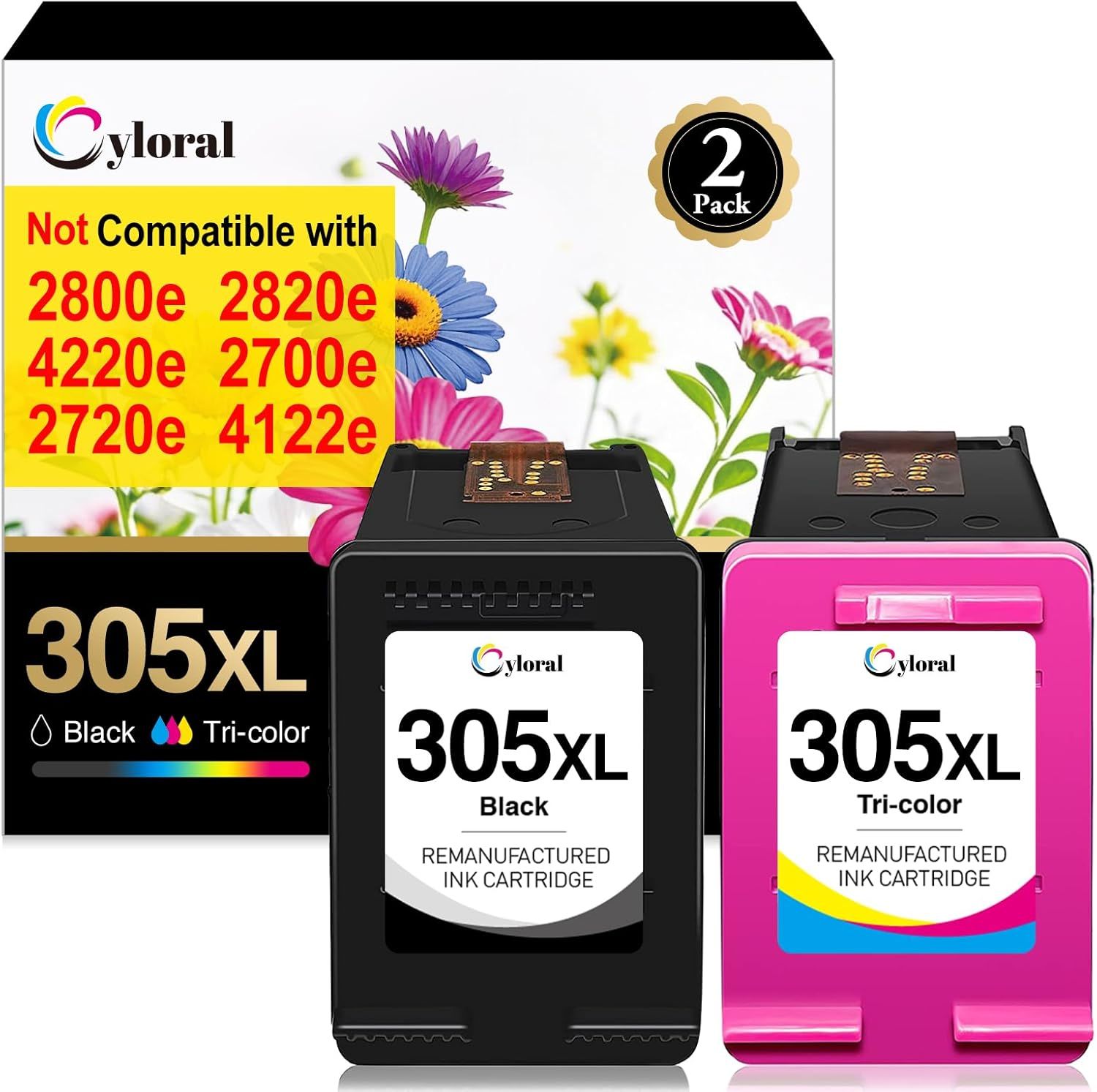 Cartouche pour HP 305 XL DeskJet 2800e 2820e 4220e 2810e 2821e 2822e 2823e 4222e 4230e 2700e 2720 2721 Envy 6420e 6020e 6022 6030 6430 6432e Cyloral Cartouche d'encre pour HP 305 XL 305XL Noir Couleur