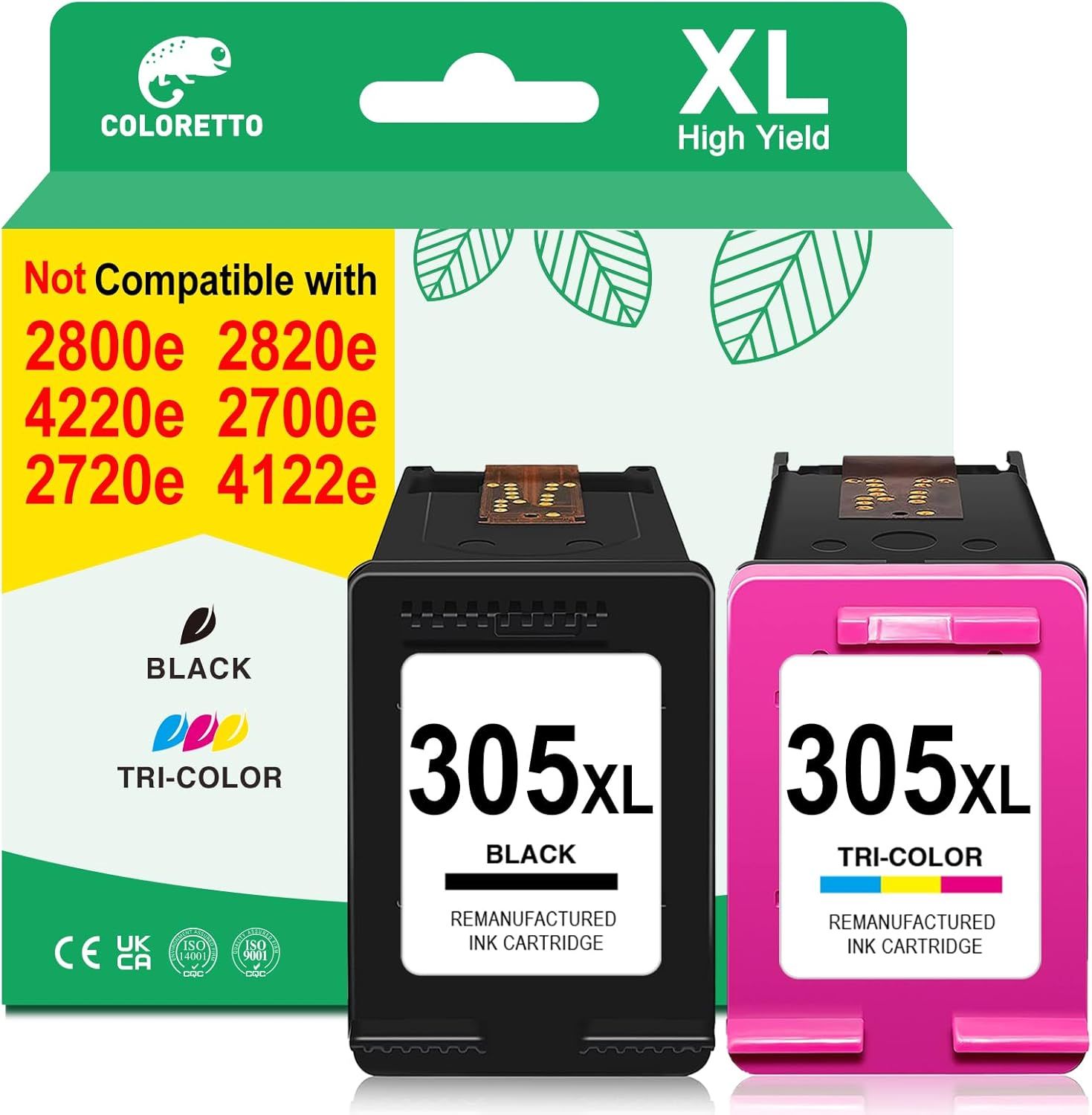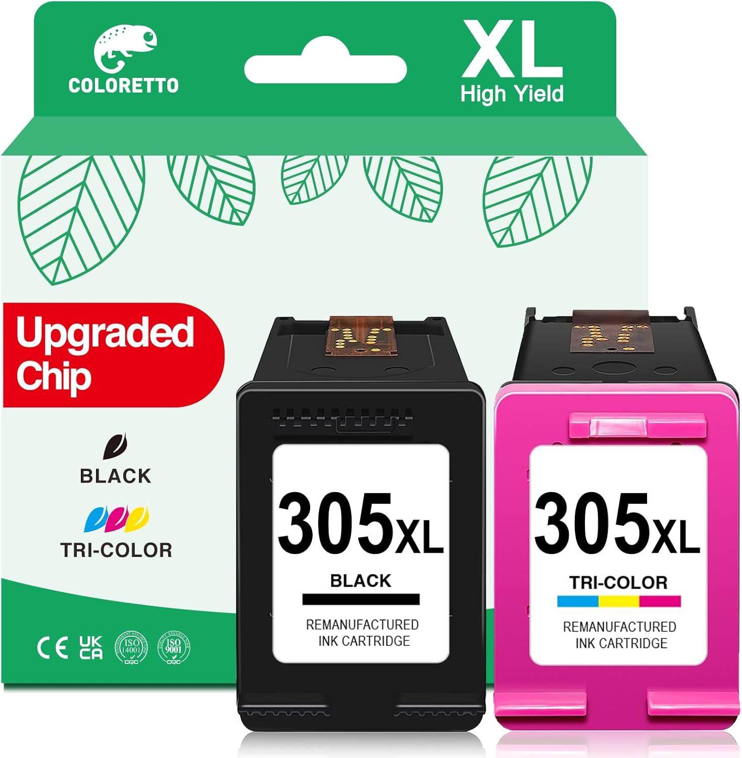 COLORETTO 305XL Cartouche pour HP 305 Envy 6032e 6000 6432e 6400 6020e 6030e 6022e 6420e 6430e 6000e 6400e 6452e 6455e 6450e 6020 6032 6022 6432 6422 Cartouche Encre pour HP 305 XL Noir et Couleur