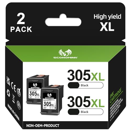 JEXNOVASHOP-305 305XL Compatible pour Cartouche HP 305 XL pour HP Deskjet 2820e 4220e 2810e 2720e 2800e pour Envy 6000 6020e 6032e 6420e 6032e 6020 6430 6432(305XL Noir, Couleur 2-Pack)