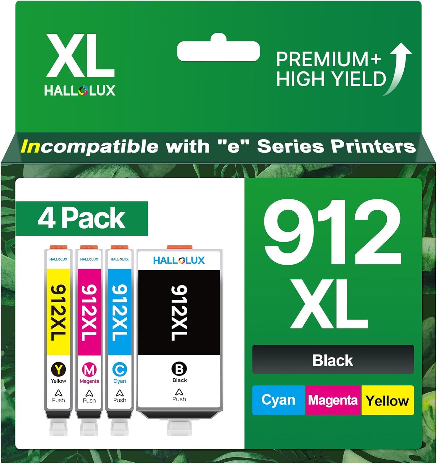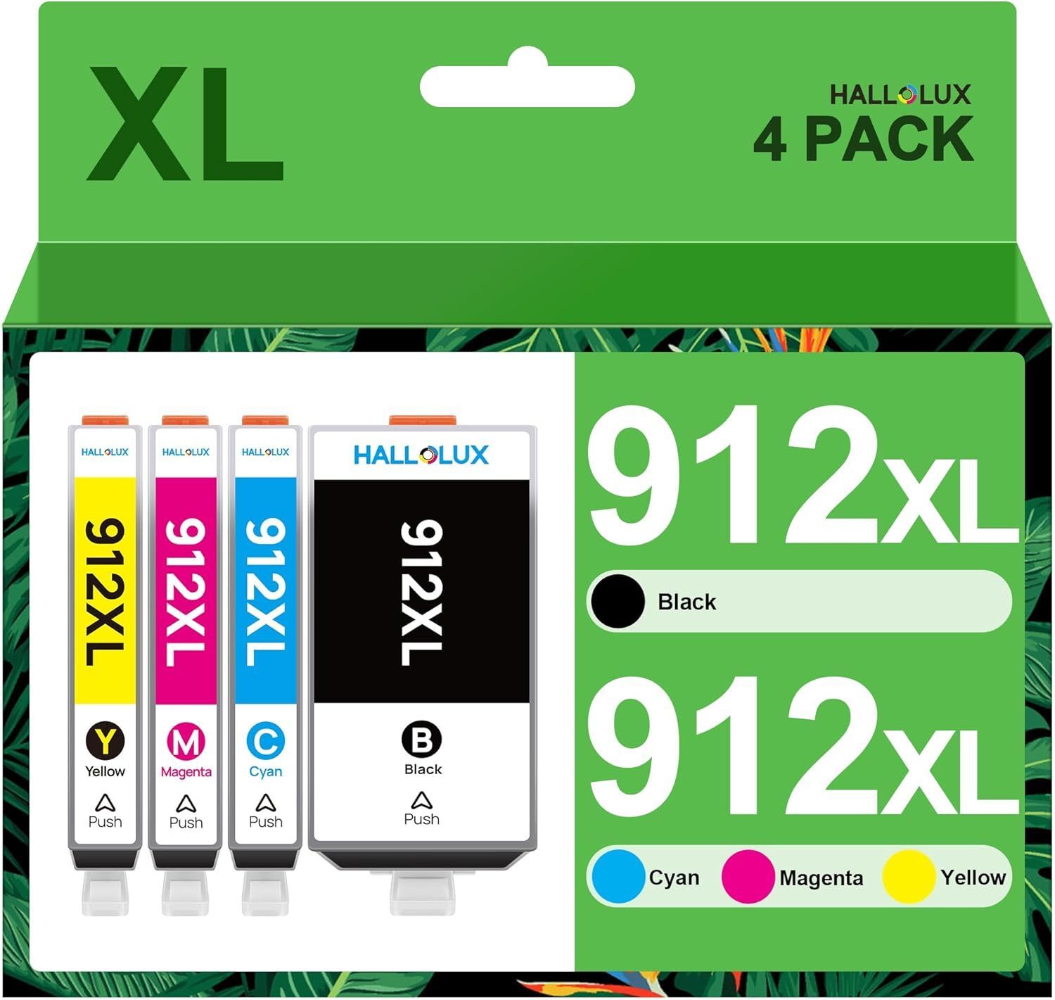 HALLOLUX 912XL Pack de 4 Cartouche d'encre Remplacement pour HP 912 912XL pour HP OfficeJet 8012 8010 8014 8015 pour OfficeJet Pro 8025 8024 8023 8020 8022 (Noir, Cyan, Magenta, Jaune, 4-Pack)