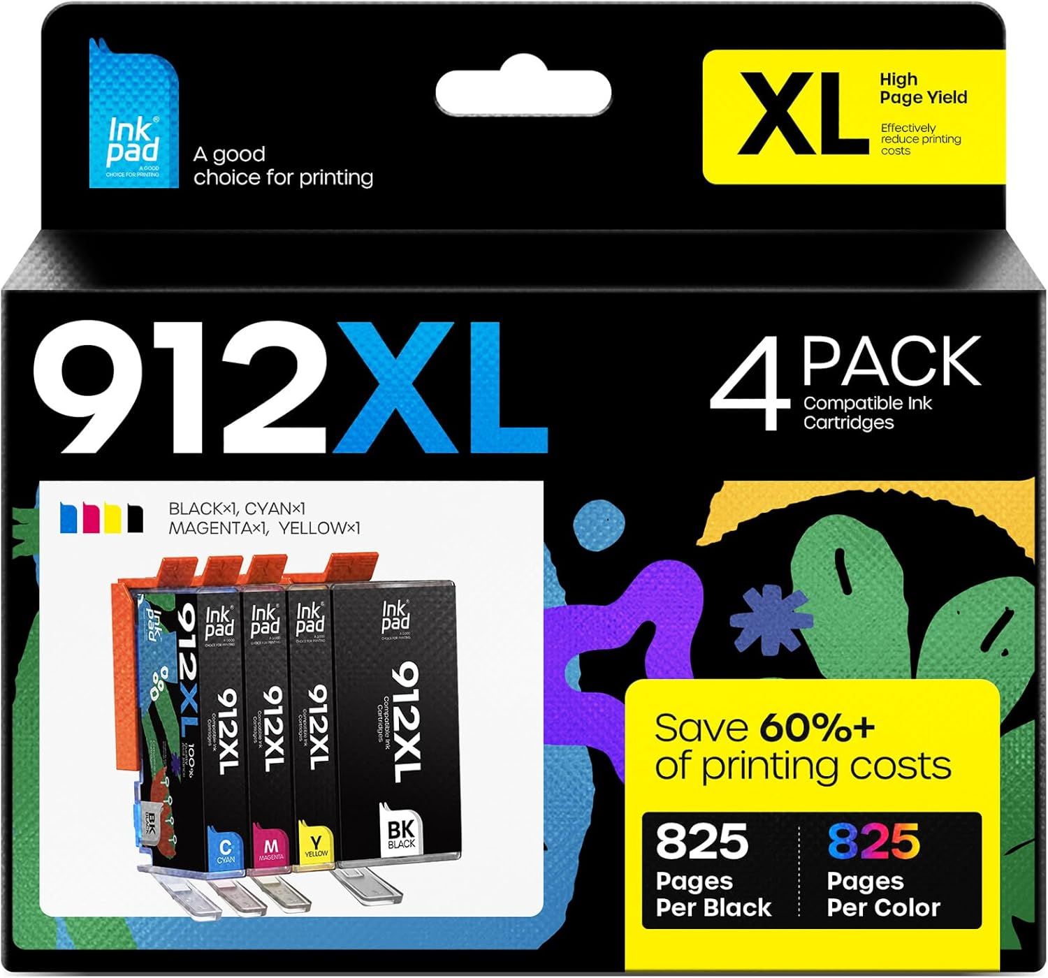 iNKPAD Cartouches 912 XL Compatibles pour Cartouche HP 912 912XL pour HP OfficeJet Pro 8022 8023 8024 8025 8030 pour OfficeJet 8010 8012 8013 8014 8015 8017 8018 (4 Pack)