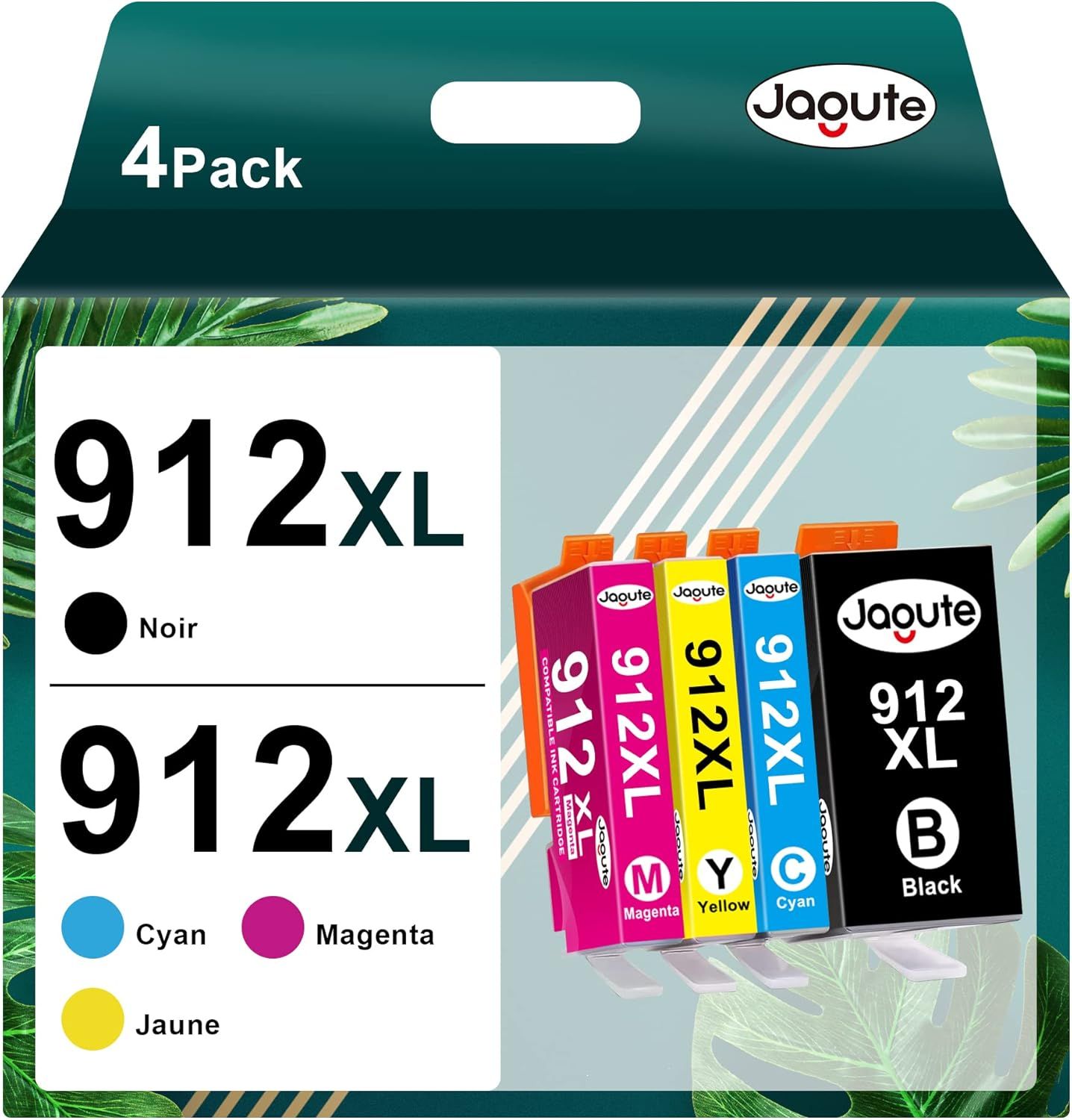 Cartouche 912 912Xl Compatible Pour Hp 912 912Xl Cartouche D'Encre Pour Hp Officejet Pro 8022 8024 8020 8023 Officejet 8012 8014 8010 8015 8017 (Noir Cyan Magenta Jaune, 4 Pack)