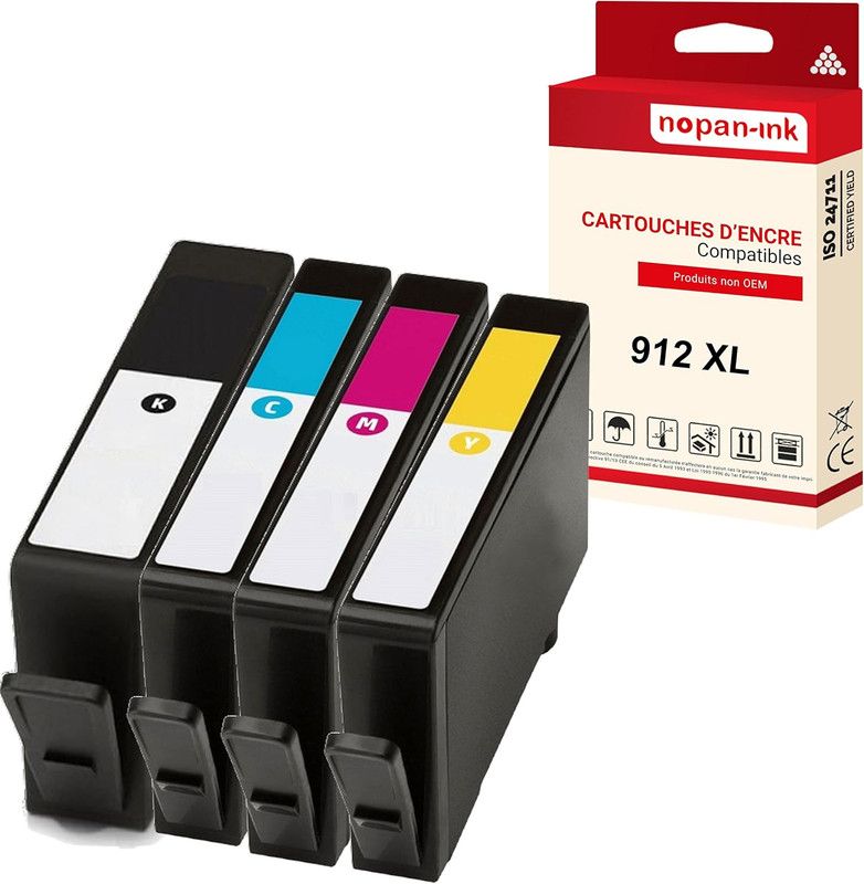 NOPAN-INK - x4 Cartouche compatible pour HP 912XL 912 XL Noir + Cyan + Magenta + Yellow