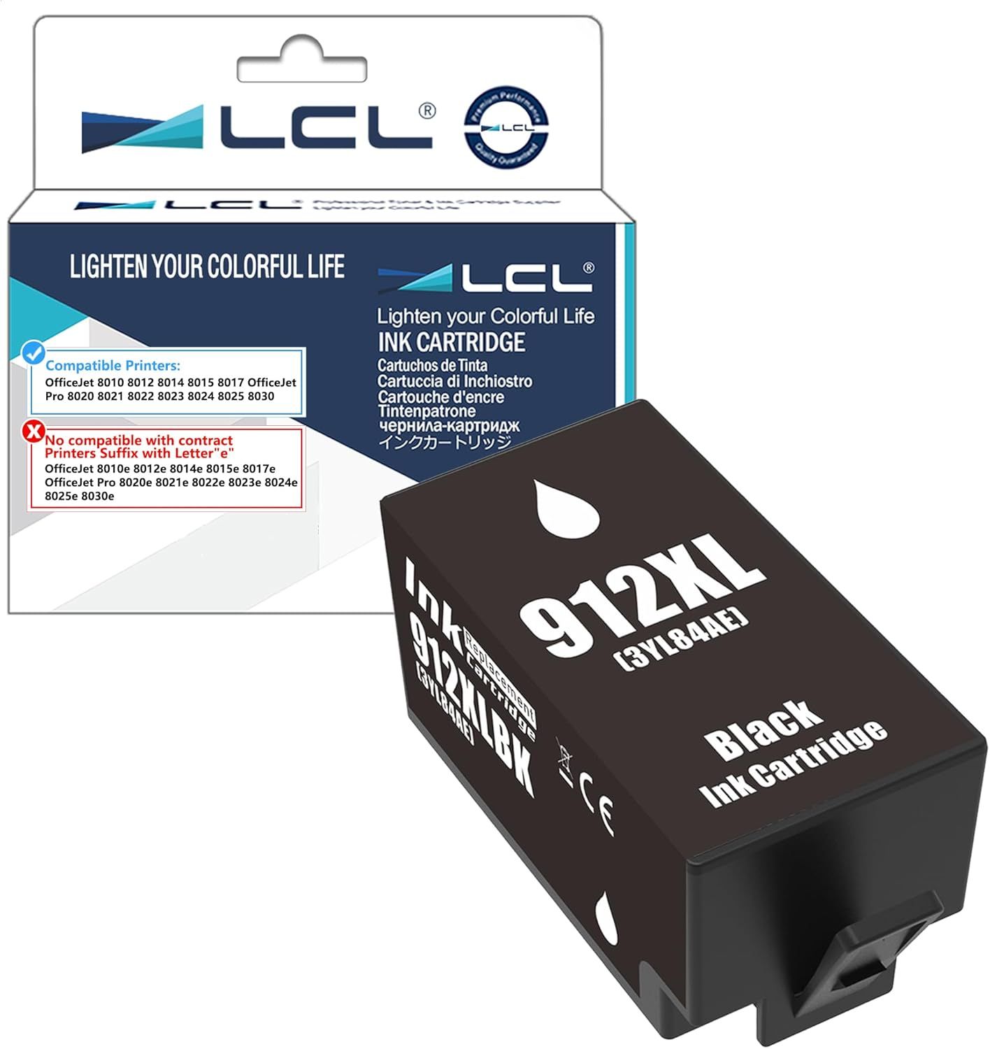 LCL 912 XL Noir Cartouche d'encre Compatible pour HP 912 912XL Compatible avec HP OfficeJet 8010 8012 8014 8015 8017, OfficeJet Pro 8020 8021 8022 8023 8024 8025 8030 (2-Pack)
