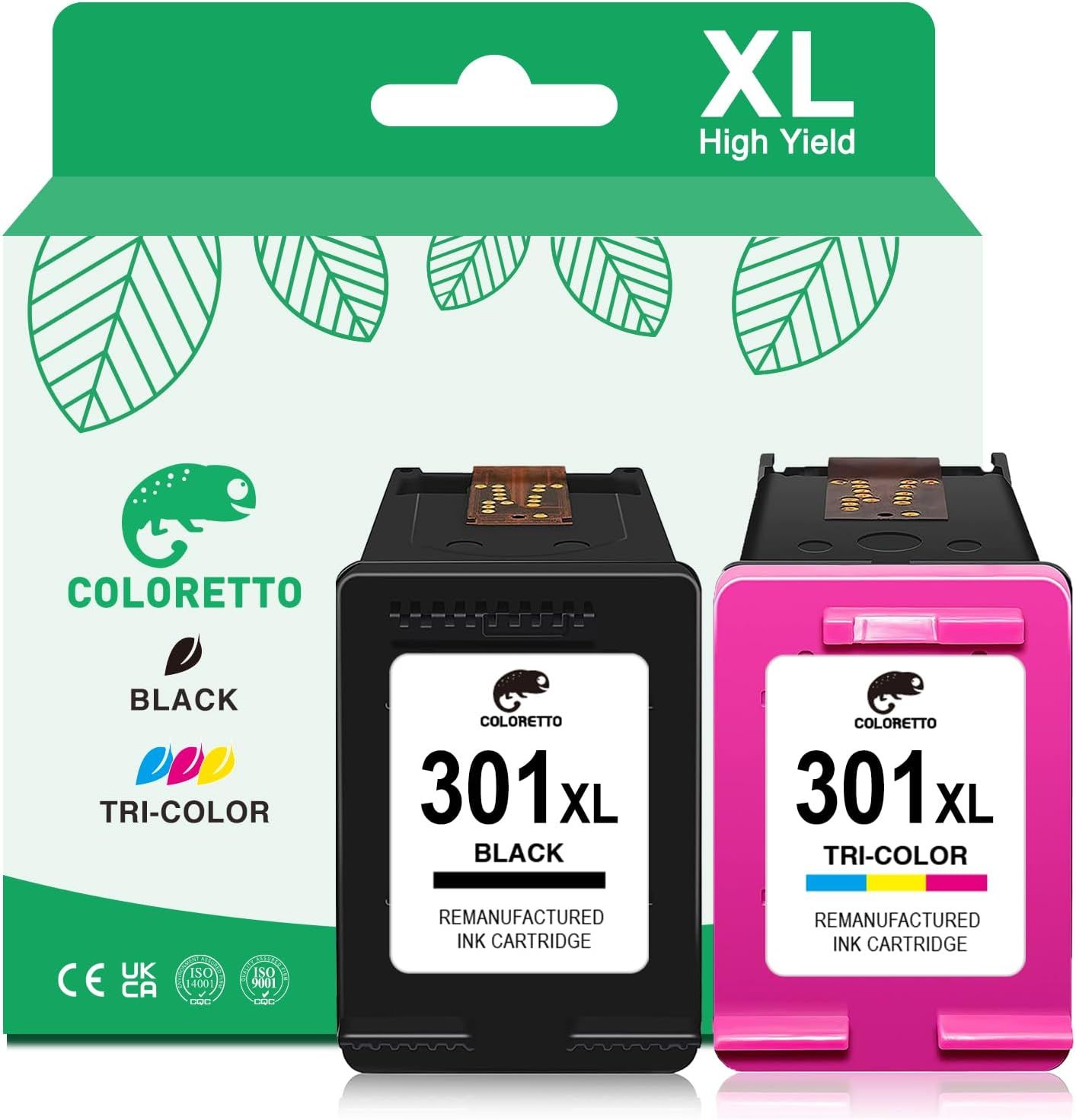 COLORETTO 301XL Cartouche pour HP 301 Envy 5530 4500 4507 5532 4504 4502 DeskJet 2540 1510 2547 3050 1050 OfficeJet 2620 2622 2624 4630 4632 4634 HP301 Cartouche Encre pour HP 301 XL Noir et Couleur