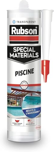 Rubson – Mastic Special Materials Piscine Transparent (cartouche de 280 ml) – Mastic étanche pour piscine et entourage – Colle pour réparation temporaire même sous l'eau