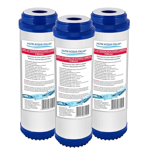 Cartouche GAC-10 pour filtrage de l'eau à charbon actif granulaire pour osmose inverse Lot de 3 pièces.