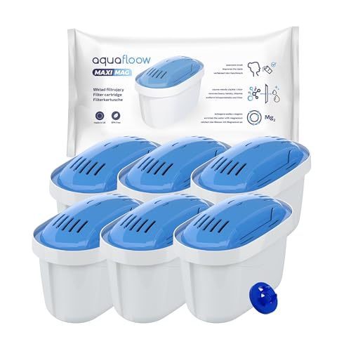 Aquafloow Maximag 6x Cartouches De Filtre À Eau Au Magnésium | Les Filtres Nettoient L'eau | Convient À Tous Les Filtres Dafi Unimax Aquaphor A5 Brita Maxtra+ Philips AWP212/10