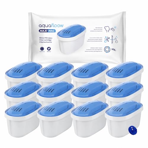 Aquafloow Maximag 12x Cartouches De Filtre À Eau Au Magnésium | Les Filtres Nettoient L'eau Et L'enrichissent En Magnésium | Dafi Unimax Aquaphor A5 Brita Maxtra+ Philips AWP212/10