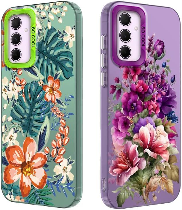 Pack Of 2 Mobile Phone Case For Samsung Galaxy A35 5G, Vintage Flowers Leaves Pattern Women Girls Aesthetic Case, Tpu Bumper Shockproof Scratch-Resistant Protective Cover[MAG6201273]