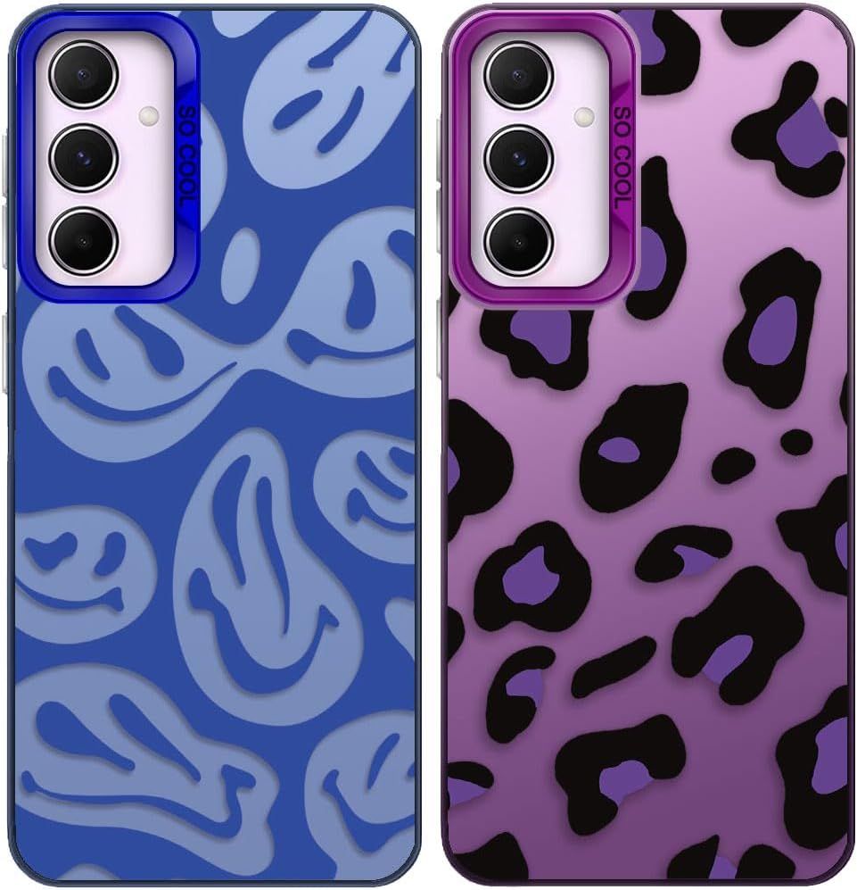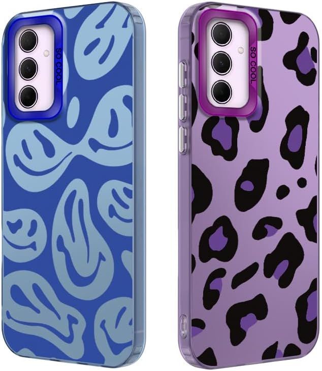 Pack Of 2 Phone Case For Samsung Galaxy A25 5g, Leopard Pattern, Hard Pc Back Cover With Tpu Soft Matte Silicone Bumper Shockproof Protective Case - Purple + Blue[Coque4795]