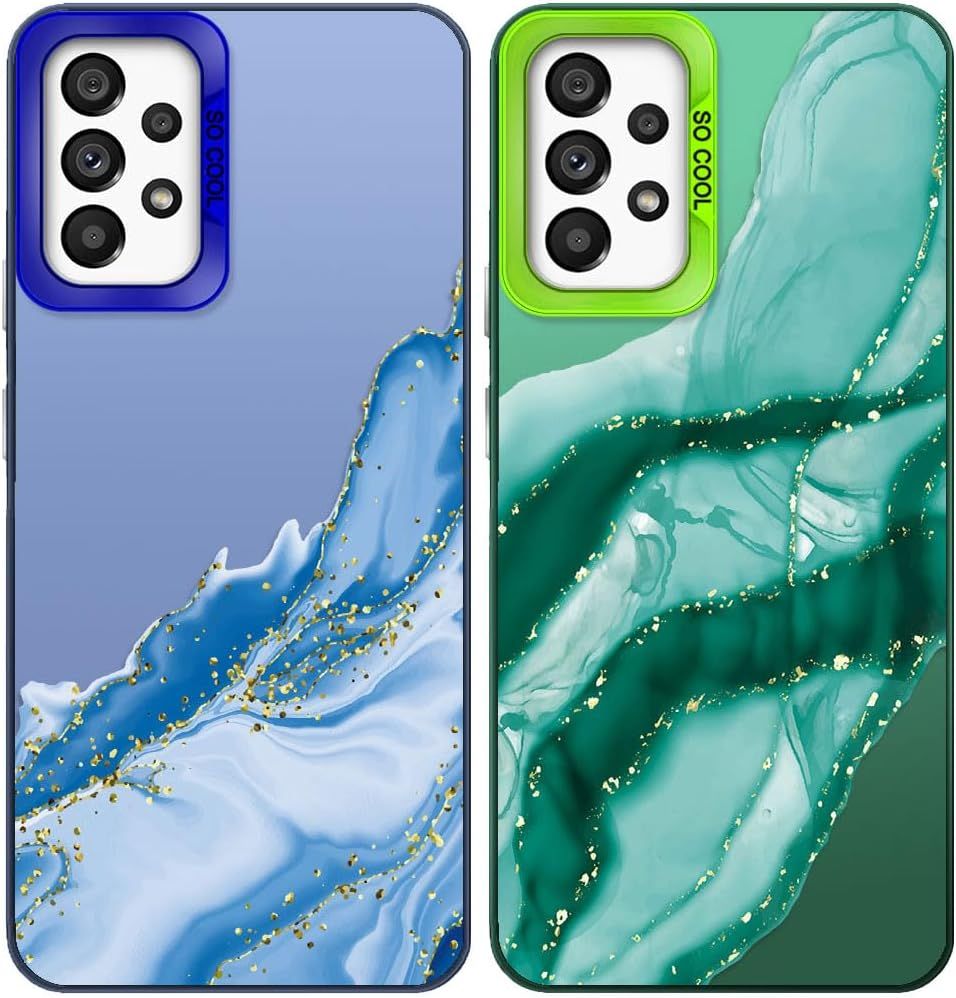 Pack Of 2 Phone Case For Samsung Galaxy A25 5g, Aesthetic Marble Pattern, Hard Pc Back Cover With Tpu Soft Matte Silicone Bumper Shockproof Protective Case, Green + Blue[Coque4781]