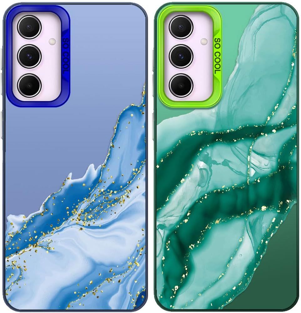 Pack Of 2 Phone Case For Samsung Galaxy A55 5G, Aesthetic Marble Pattern, Hard Pc Back Cover With Tpu Soft Matte Silicone Bumper Shockproof Protective Case, Green + Blue[MAG6201290]