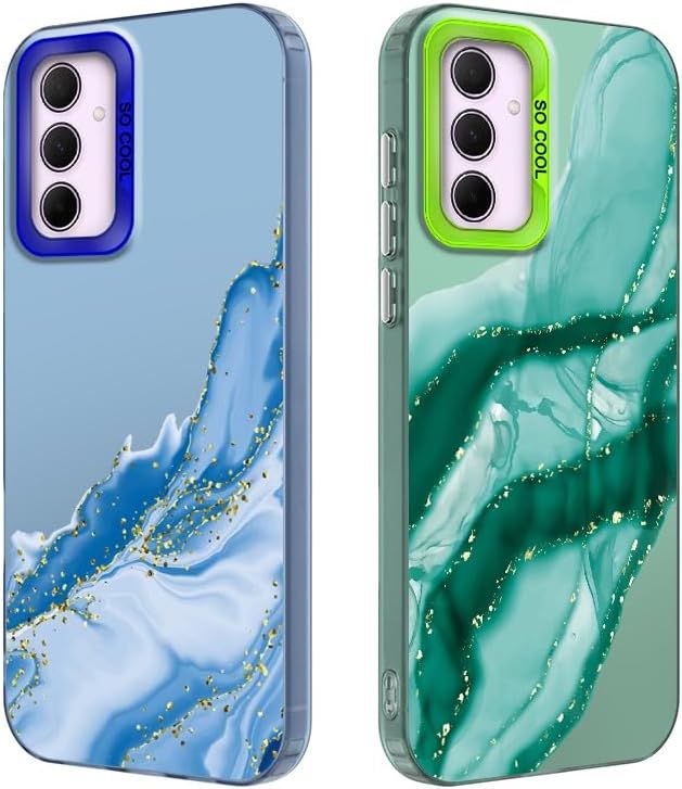 Pack Of 2 Phone Case For Samsung Galaxy A35 5G, Aesthetic Marble Pattern, Hard Pc Back Cover With Tpu Soft Matte Silicone Bumper Shockproof Protective Case, Green + Blue[MAG6201284]