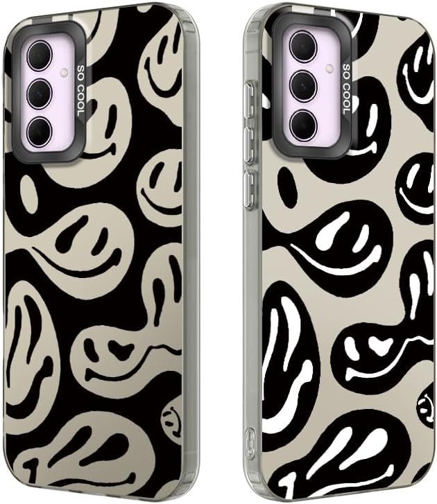 Pack Of 2 Phone Case For Samsung Galaxy A13 4g/ 5g/ A04s 6.6 Inch, Funny Smile Face Pattern, Hard Pc Back Cover With Tpu Soft Matte Silicone Bumper Shockproof Protective Case - Bla[Coque4977]