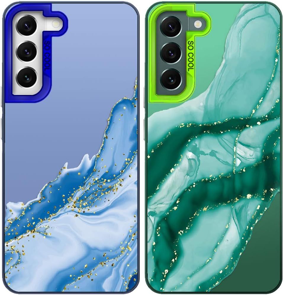 Pack Of 2 Phone Case For Samsung Galaxy S22+ / S22 Plus, Aesthetic Marble Pattern, Hard Pc Back Cover With Tpu Soft Matte Silicone Bumper Shockproof Protective Case, Green + Blue[MAG6201295]