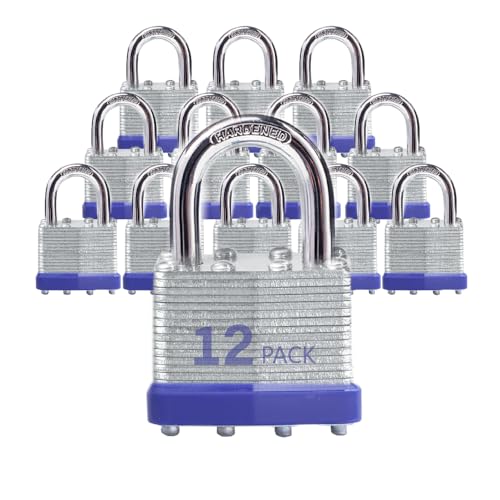 Lot de 12 cadenas d'extérieur à clé avec la même clé – Cadenas à clé en acier laminé avec anse normale, pour loquet à moraillon, abris de jardin, clôtures, casier de rangement, école, salle de sport