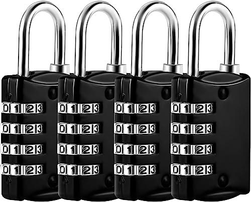 Lot de 4 Cadenas Code de 4 Chiffres, Petit Cadenas a Code College,Valise Avion en Métal Exterieur pour Casier Bagage Gym (Noir)