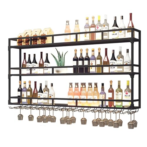 Casier à vin en métal avec Porte Verre Porte-Bouteilles Mural Mur Porte-Verre Barre des étagères flottantes pour Bar la Maison Le Restaurant Les Bars (Size:120CM)