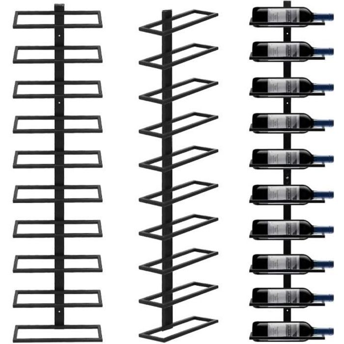 Yipeema Porte Bouteille Mural Design Industriel - Range Bouteille Vertical 10 Places - Casier à Vin en Métal Noir 27 x 10.5 x 116 cm